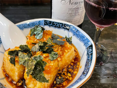 蕪のあんかけ。冷酒(青森の田酒)と白ワインをいただきました。