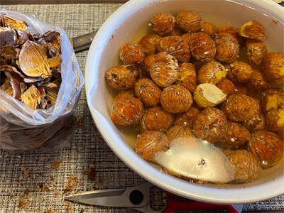 巣の中にはドロバチの卵と、毒針で麻痺させられたイモムシやクモなどの虫類(孵化した幼虫の餌になる)が、一緒に入ってるそうです。