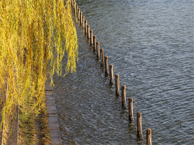 柳と水面と光の風情を撮ってみました。広角レンズは背景にゴチャゴチャと情報が映り込むのが難しいところですねえ。