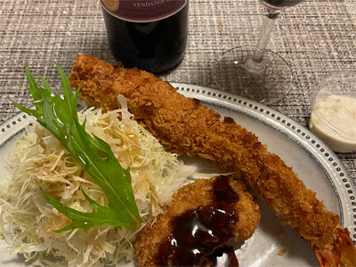 夕食は「ロカヴォ」にて、ハンバーグとカキフライのプレート。で、赤ワイン1本。いつも丁寧な料理を作っておられて安心の美味しさです。
