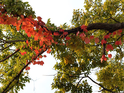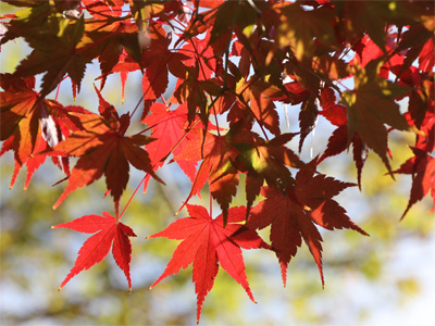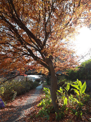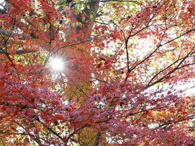 光に透ける紅葉はまァまァ綺麗です。