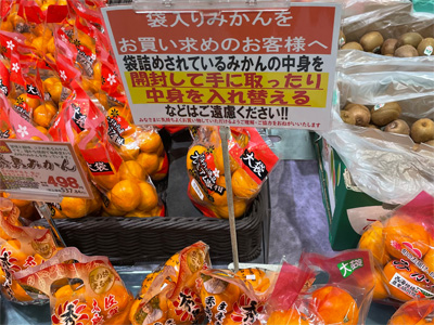 こういう袋詰めみかんの中身を入れ替える人もいるのかと驚きました。