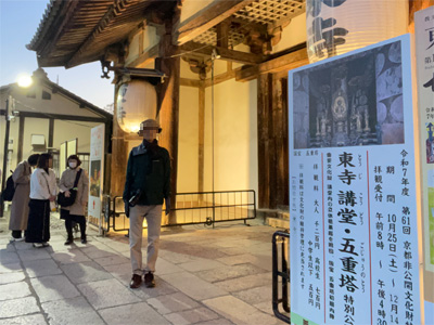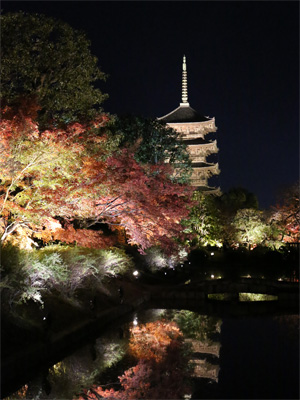 翌日は招待券をいただいていた東寺の境内ライトアップを観に行きました。