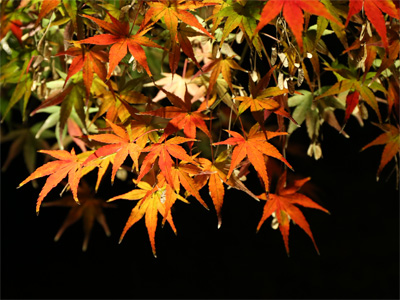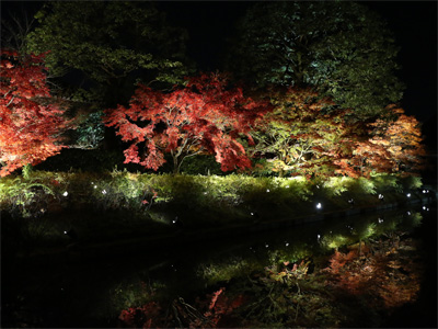 17時から並んで、18時の開門と同時に入場。さすが千円の拝観料を取るだけあって立派なライトアップです。夜の境内に浮かびあがる紅葉に、池の水面に映る紅葉、人工的なFUZEIまみれです。
