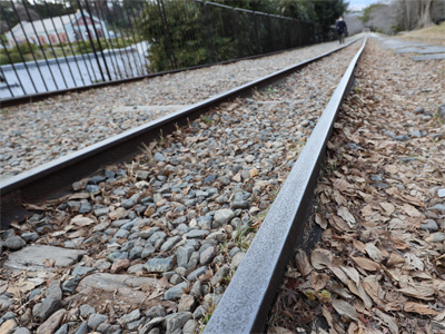 そのまま蹴上のインクラインを散策。真ん中のこの二本が線路として使われていたのだと思っていたのですが……