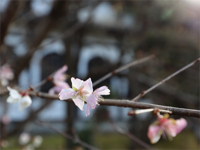 寒桜の花がチラホラ。