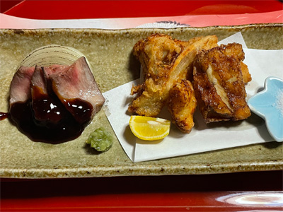 牛肉のたたきと、フグの唐揚げ。