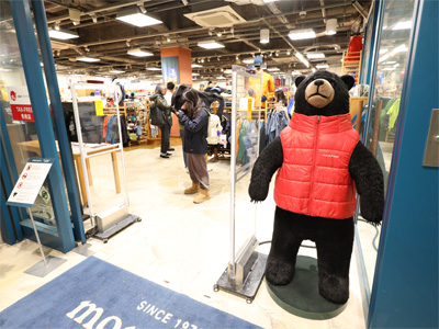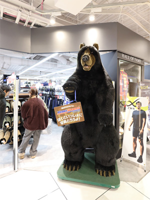そういえば、モンベルショップにも熊の人形が置いてありますね。