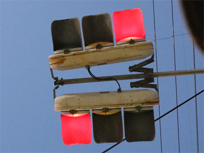 赤信号も真下から見上げるとこんな風です。