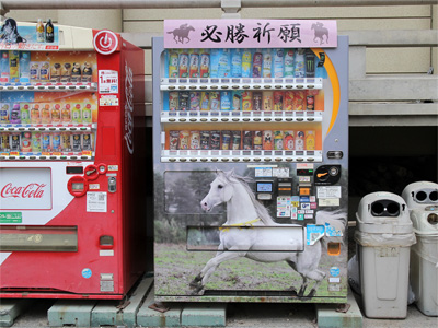 缶飲料の自販機もお馬さんで「必勝祈願」でした。必勝を願って飲む缶ジュース。
