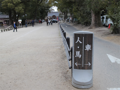 参道の左側は「人・馬」、右側は「車」の通路となっています。……この令和の時代、馬で来る人も多いんでしょうか(笑)。