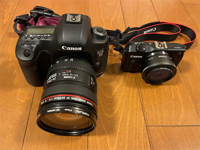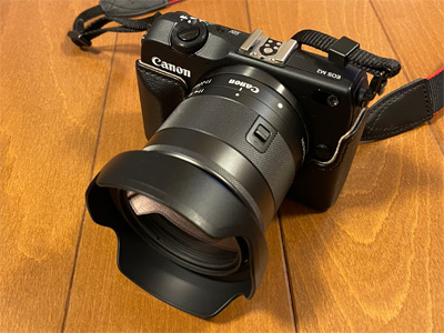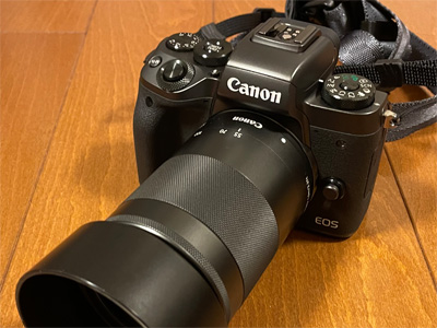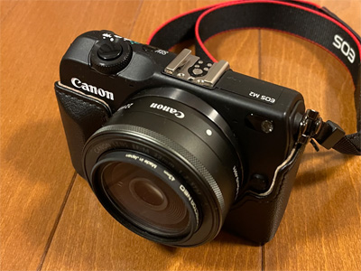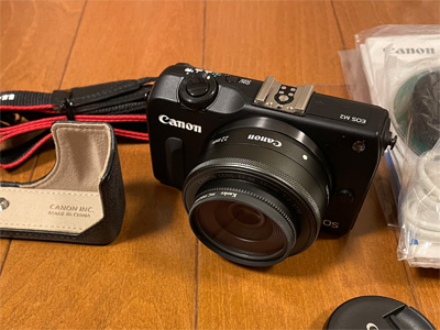 またまたカメラを買ってしまいました。キヤノンのM5、中古のAB品が15%引きセールで42,800円なり。 小さくコンパクトでメカメカしくて可愛らしいです(笑)。