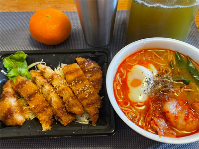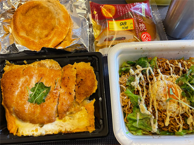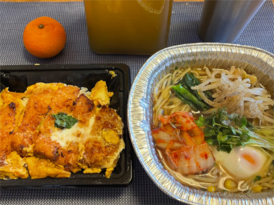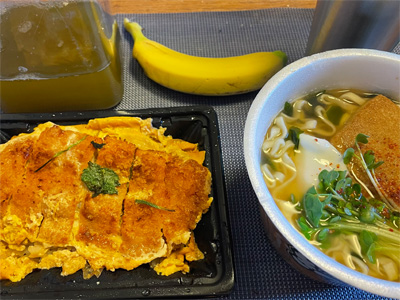 翌日はスーパーのカツ丼と、カップうどん。