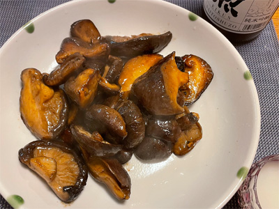 ニシンの山椒煮、野菜サラダ、焼き椎茸、小松菜とお揚げのお汁、鶏軟骨の山椒煮、セロリのマリネ、豚しゃぶおろしポン酢。デザートにシュークリーム。