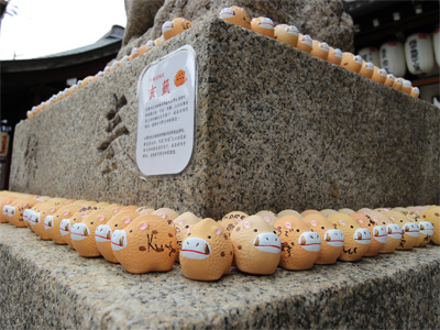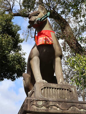 神の使いであるキツネさんの像、鍵をくわえておられます。
