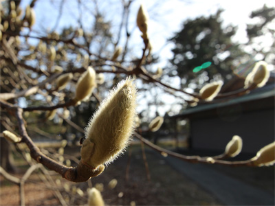 モクレンのつぼみでしょうか。もけもけしていて可愛らしい。