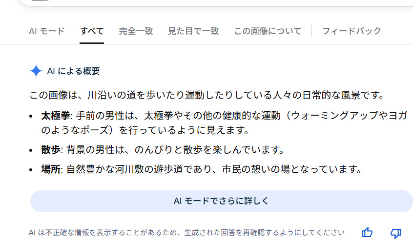 太極拳ではないように思いますが、健康的な運動というのはおそらくその通りなので、さすがはAI!!(こんなことにしかAIを使っていない当方です)。