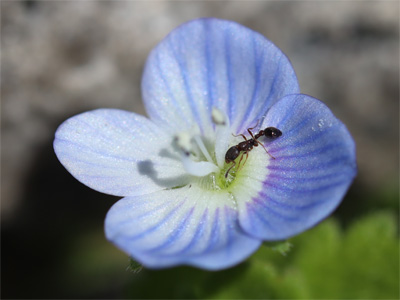 オオイヌノフグリの花に登る蟻。