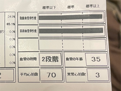 血管年齢は35歳とのことで、実年齢より若くてチョット嬉しい。