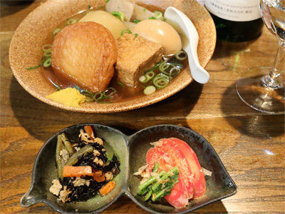 蕪のあんかけ。冷酒(青森の田酒)と白ワインをいただきました。