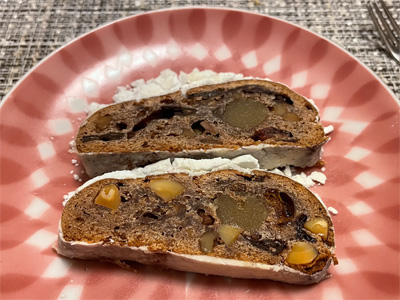 デザートに中書島の「ベーグルカフェ ピギー」のシュトーレン(チョコ風味)。
